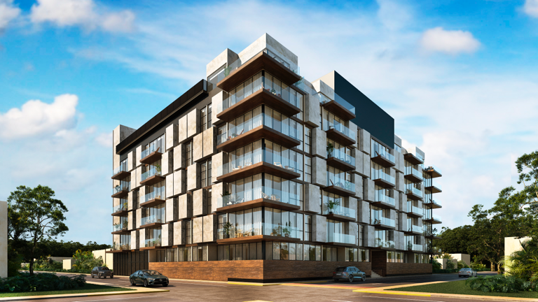This exclusive residential complex comprises 92 units on 6 levels. One-, two-, and three-bedroom apartments and one- and two-bedroom, two-level luxury penthouses, with pool.